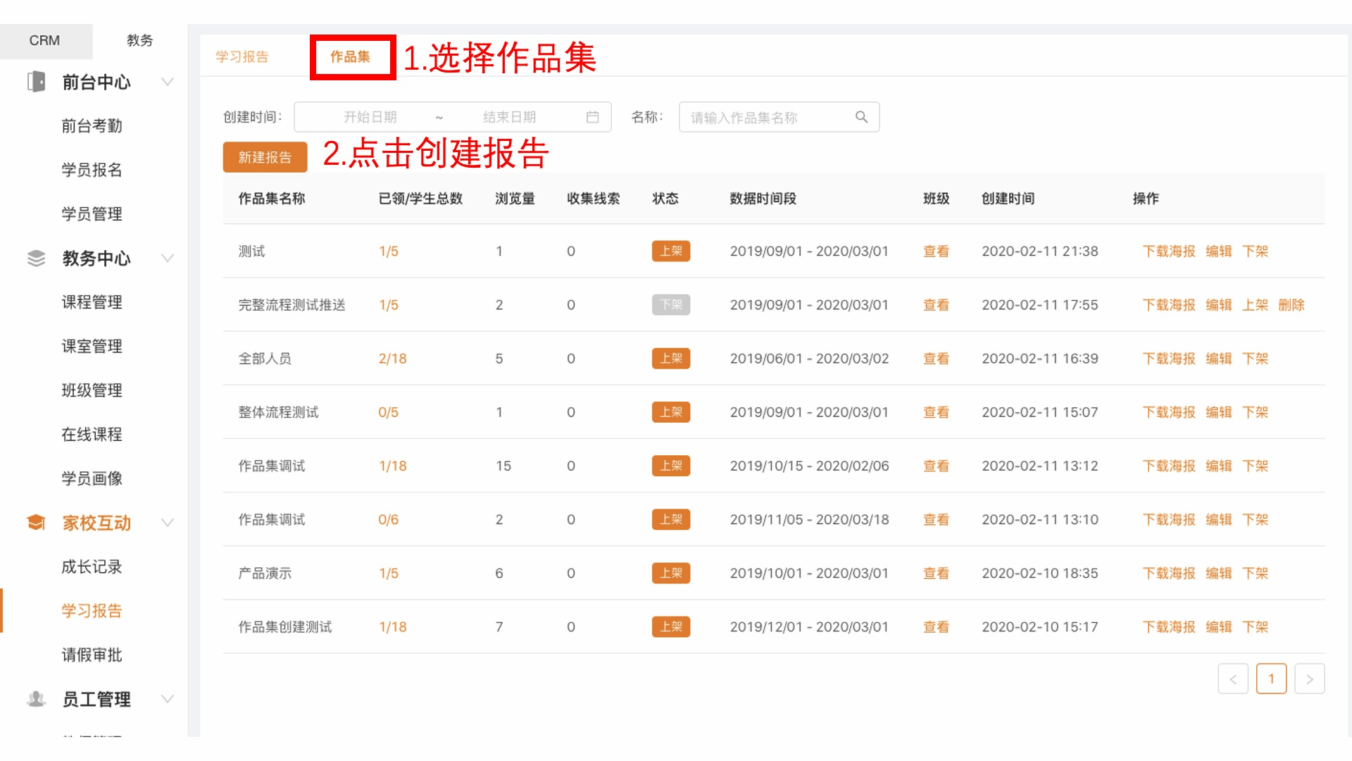 PC操作:教务-家校互动-作品集