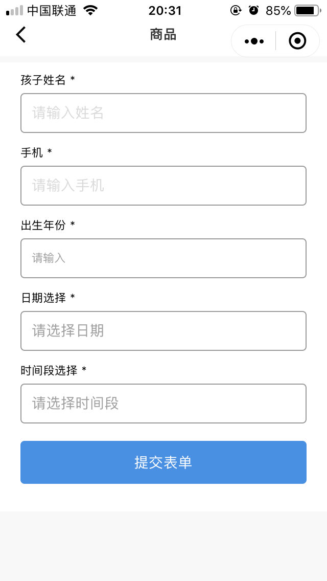 6.【绑定表单】-商品绑定表单后若库存为0,填完表单后方可咨询;
