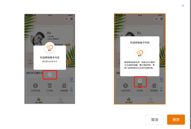 - 点击【提示浮层】授权 进入小程序时,点击浮层关闭按钮时发起授权手机号码